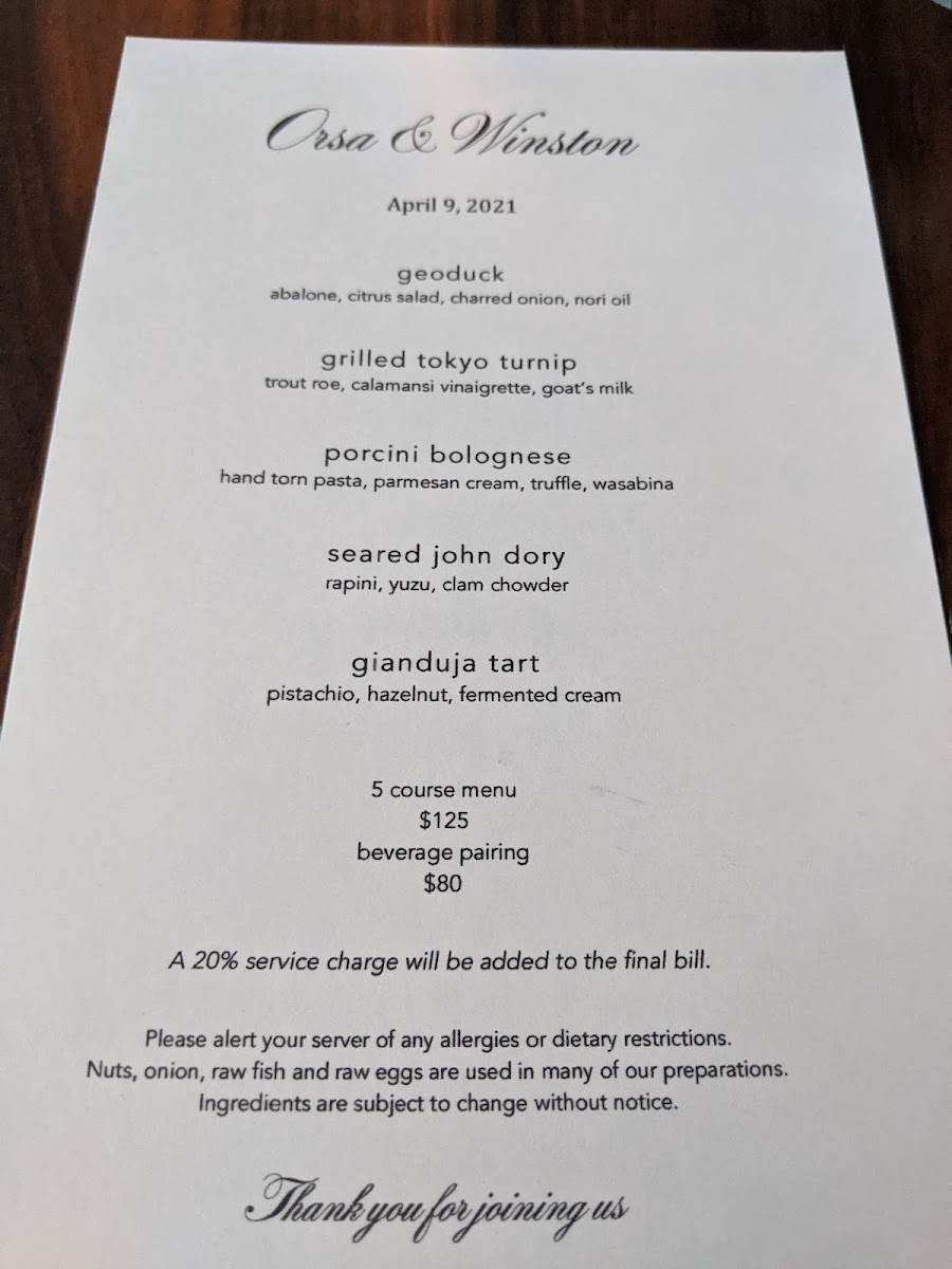 While some guests experienced minor hiccups—like needing to wait outside before their reservation—these were swiftly overshadowed by the immaculate food quality and attentive service provided throughout their experience. Orsa & Winston's team truly understands the art of hospitality, ensuring that each guest feels cared for and valued, making for an enjoyable evening from start to finish.